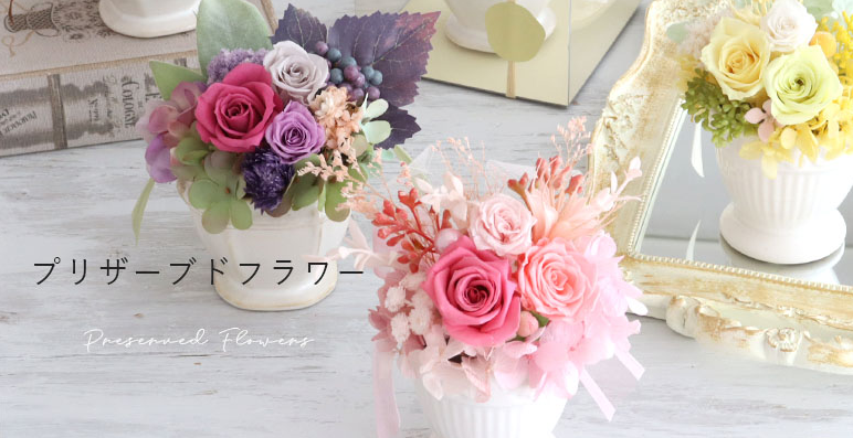 プリザーブドフラワーやドライフラワーだからこそ、記念品として長く飾って楽しむことができ、お祝いや記念日の贈り物、誕生日プレゼントなどにもオススメ!