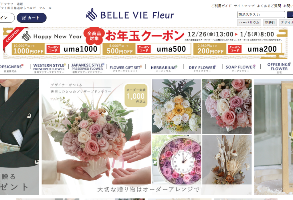 プリザーブドフラワー・ドライフラワー・ソープフラワーなど、お花を種類が豊富で、気軽に贈るお花から目上の方へ贈る用お花まであり、相手の方のお好み・雰囲気や予算に合わせて選べるのがオススメ!