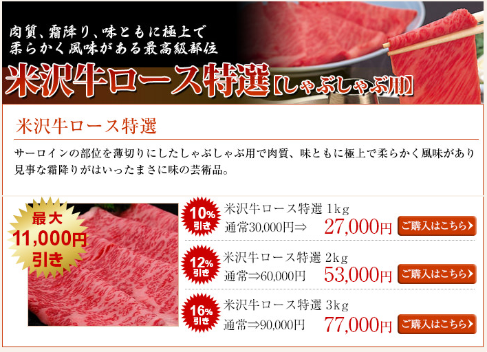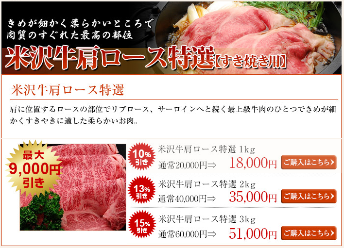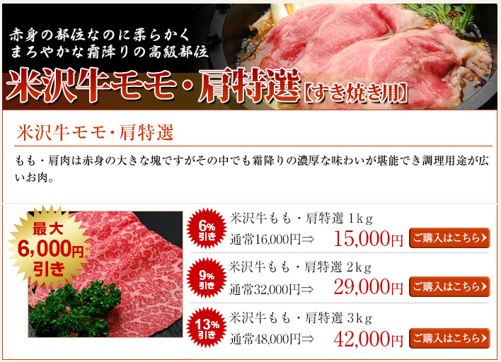 【PR】さかの 「米沢牛専門店のご紹介」◆おすすめポイント◆精肉から加工品まで色々な商品があるのが嬉しいポイント。お試しセットはすき焼き、焼肉、お鍋、切り落としの4つから選べるて送料無料なのがオススメです。用途別で探したり、予算から探したり、人数から選んだり、部位から選んだり様々な検索方法があるのも高ポイント!家族団らんすき焼きセットもオススメです!送料無料商品もありますし、カタログギフトなどもあるので、ご自宅用からパーティ用・贈答用まで幅広く活用できて嬉しい★ 詳細はこちらをクリック 【すき焼きカテゴリー】たれ ¥380(税込)~お肉 ¥3,900(税込)~ 【焼肉カテゴリー】たれ ¥380(税込)~お肉 ¥3,900(税込)~ 【ステーキカテゴリー】お肉 ¥2,800(税込)~ 【しゃぶしゃぶカテゴリー】お肉 ¥3,900(税込)~ 【お惣菜・加工品カテゴリー】コロッケやメンチカツ、サラミやウインナー、ハンバーグに甘露煮・しぐれ煮、肉だんごやローストビーフなど色々あります。¥260(税込)~ 商材名 さかの運営者 C.O※当サイトはアフィリエイトプログラムを利用し宣伝目的で作成しております。